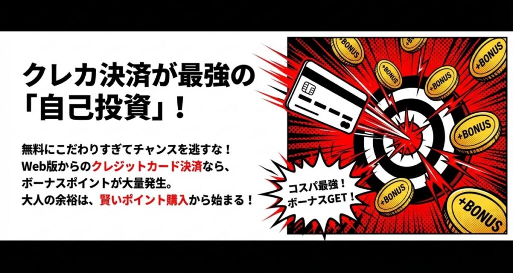 Web版からサイトに登録すると、一番お得なクレジットカード決済が利用でき、ボーナスポイントが多く付与されます。