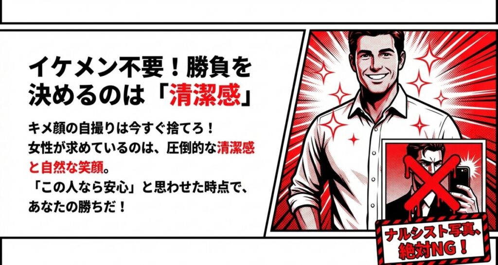見た目に自信がなくても大丈夫です。女性が一番重視しているのは、イケメンかどうかではなく「清潔感」と「自然な笑顔」なんですよ。