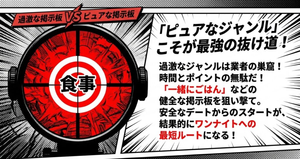 このセクションを読めば、ポイントを節約しながら効率的に女性を探すための具体的な掲示板の活用法がわかります。大人の男性らしいスマートな誘い方を身につけて、理想の出会いを引き寄せましょう。