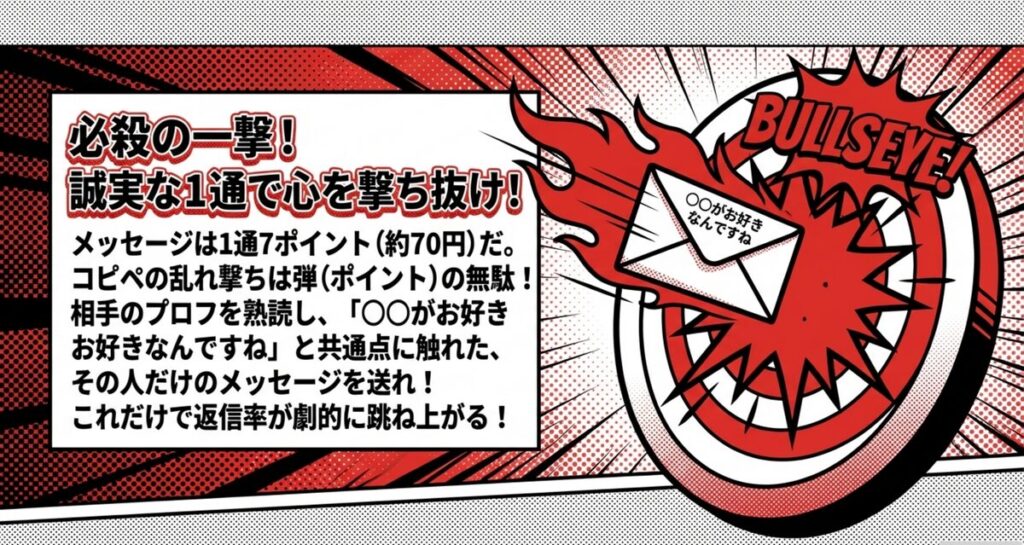 このセクションを読めば、プロフィールやメッセージから危険なユーザーを見抜く方法と、返信率を上げる具体的なメッセージ術が身につきます。