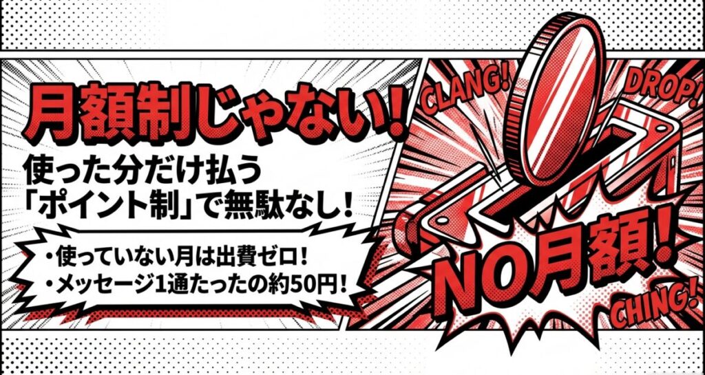 メッセージを1通送信するのに、約50円相当のポイントを消費するだけなんですよ。