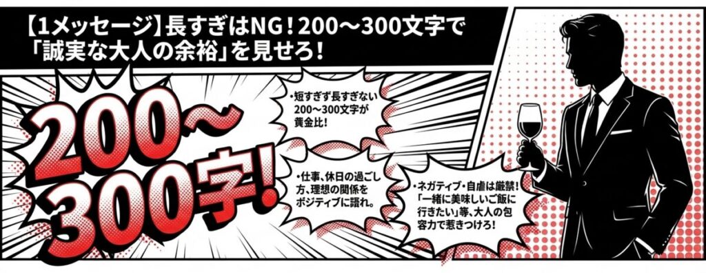 このセクションを読めば、メッセージのやり取りで悩む時間を大幅に減らし、最短で目的の合う女性と出会えるようになりますよ。