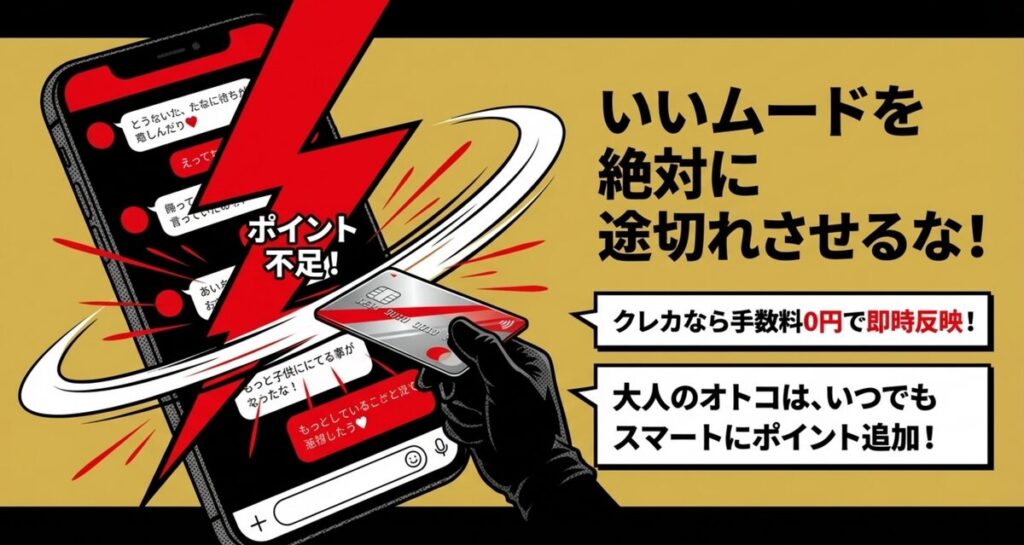 クレジットカードなら、いつでもどこでもスムーズにポイントを追加できるため、せっかくのチャンスを逃しません。スピードが求められる出会いの場では、この即時反映の安心感は非常に重要です。