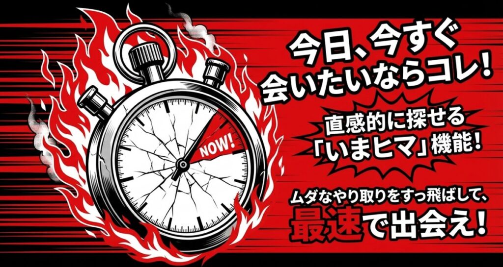 無駄なメッセージのやり取りを大幅に省略できるため、ポイントの節約にも直結します。長々とやり取りを続けることなく、現実の出会いへと素早く展開できるのが「いまヒマ」の最大の魅力です。