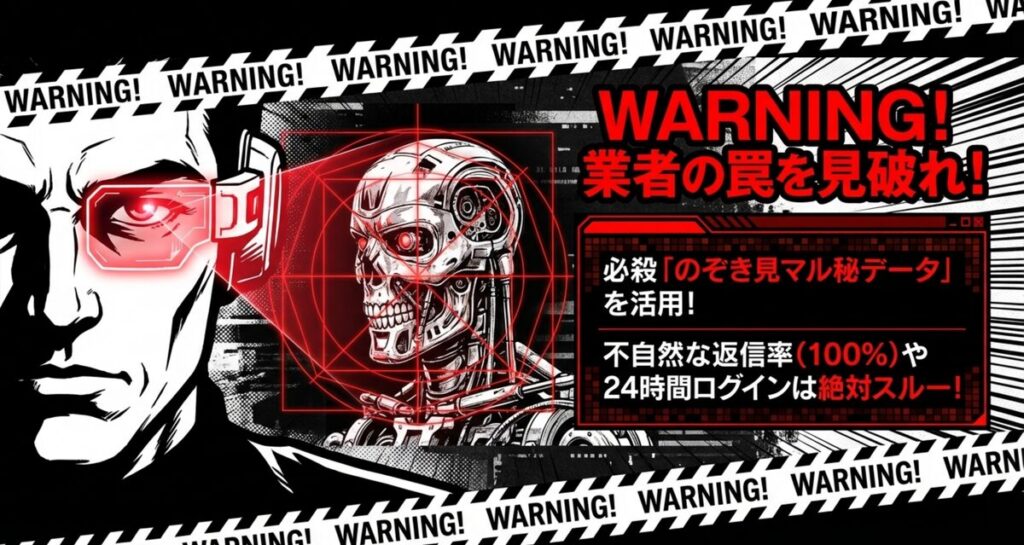| 返信率 | 不自然に100%に近い(業者の可能性) |