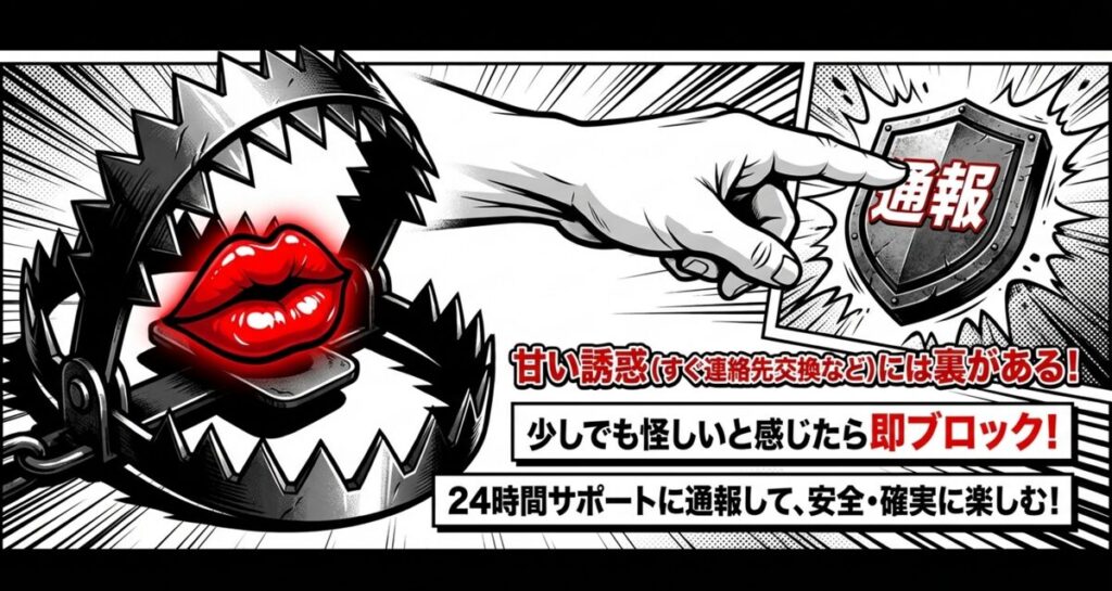 このセクションでは、悪質ユーザーを事前に見極め、あなた自身の安全とコストを守るための具体的な自衛策を解説します。便利な機能やサポート体制をフル活用して、安心してセフレや気の合う相手を探しましょう。