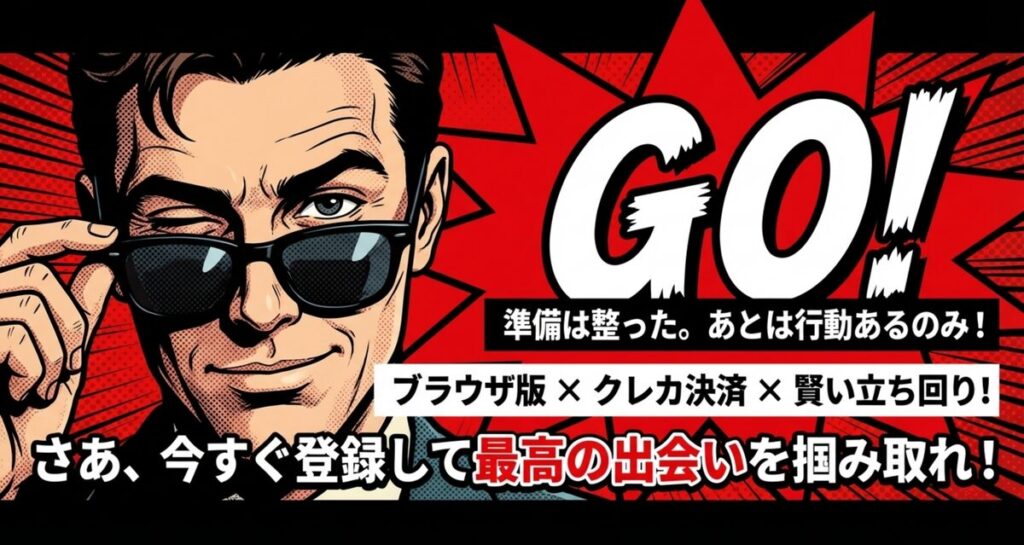 少しの投資と賢い行動で、あなたの日常を彩る魅力的な大人なパートナーとの出会いをぜひ実現させてください。あなたの一歩を、全力で応援していますよ!