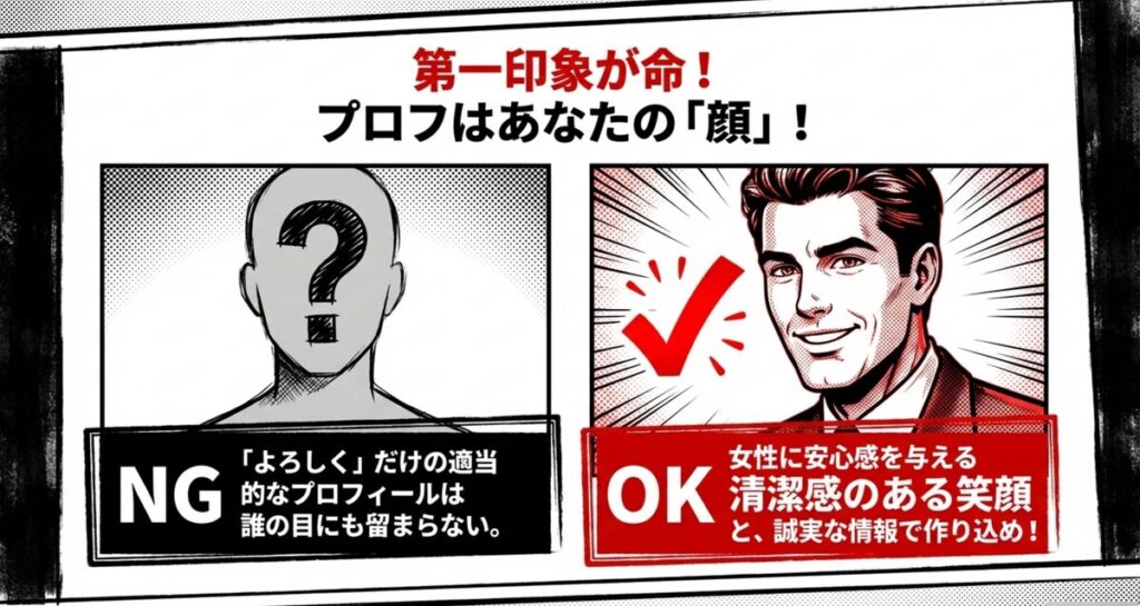 このセクションでは、女性に安心感を与え「この人と会ってみたい」と思わせる、プロフィールの作り方を徹底解説します。