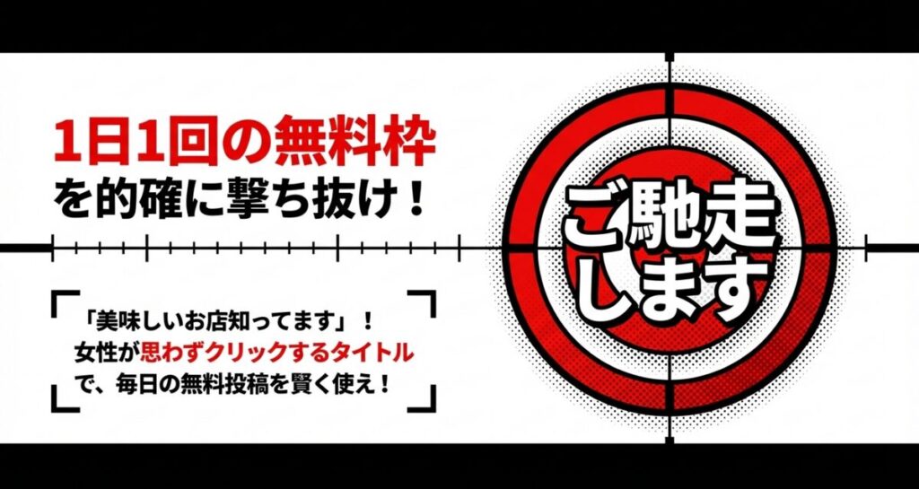 • 1日1回無料の掲示板投稿で具体的なデートプランを提案すれば、コストを抑えながら反応率が上がる
