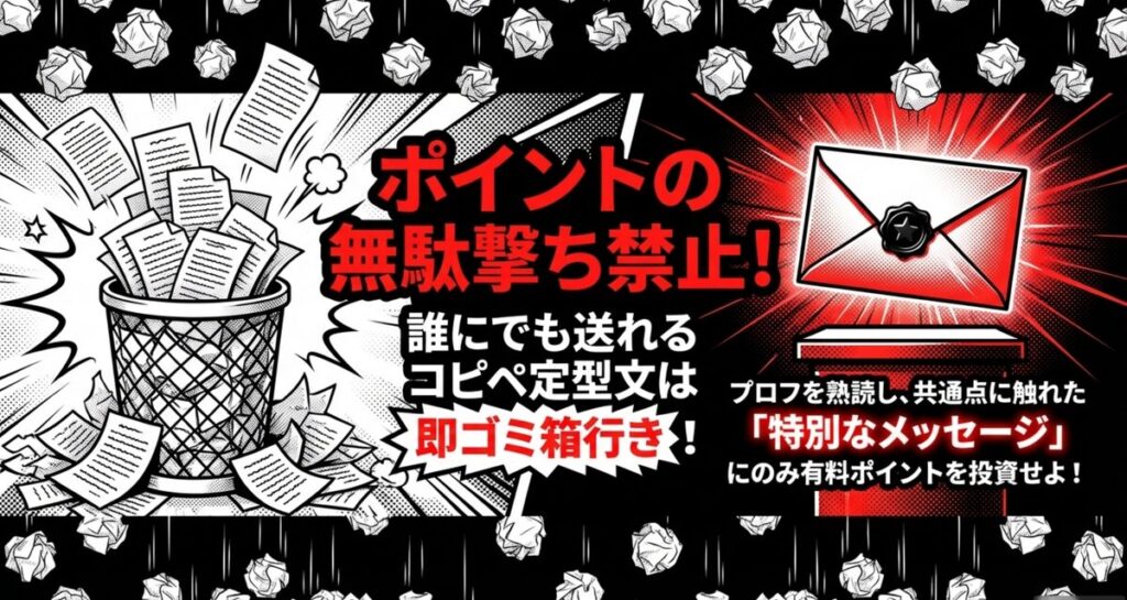 このセクションでは、ポイントを賢く投資しながら返信率を劇的に上げる、メッセージ攻略の具体的なコツをお伝えします。