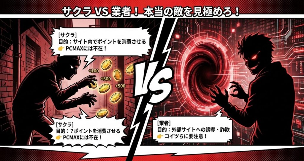 PCMAXにおけるサクラの有無と、外部から紛れ込む「業者」の実態について、正しく理解しておきましょう。