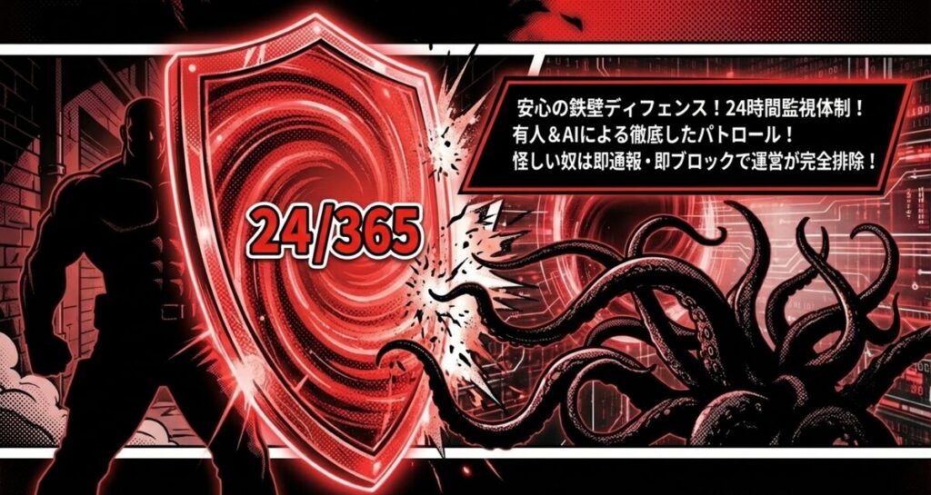 24時間365日の監視体制が敷かれており、悪質な業者や不適切な書き込みを日々排除してくれています。