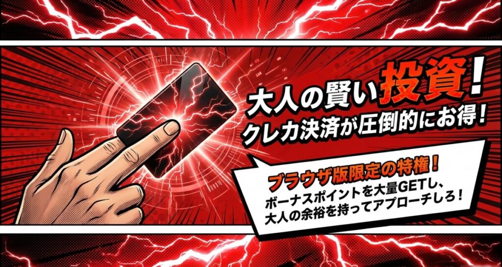 クレジットカード決済を利用すると、ポイント購入時にボーナスが多く付与されるため、圧倒的にコストパフォーマンスが高くなります。