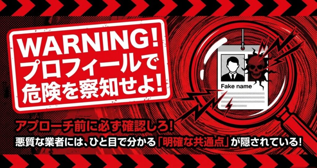 具体的なチェックポイントを頭に入れておけば、プロフィールを見ただけで危険な業者を一発で見抜けるようになります。