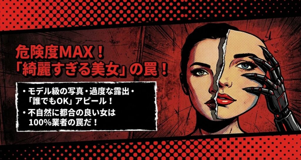 業者のプロフィールには、男性の下心を刺激して騙そうとする分かりやすい共通点やサインが隠されています。このセクションの知識さえあれば、悪質ユーザーに無駄なポイントと時間を奪われるリスクを劇的に減らすことができますよ。