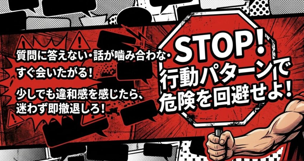 この違いを頭に入れておくだけで、いざ怪しい相手に遭遇しても冷静に対処できるようになります。「なんかおかしいな」と感じた瞬間が、自分を守る大切なサインだと覚えておいてくださいね。