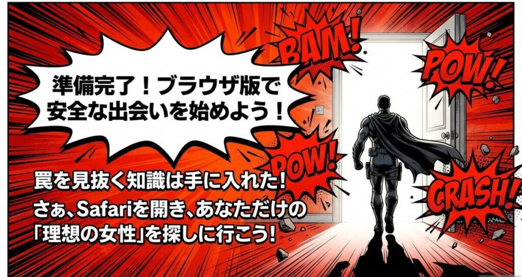 正しい知識さえ持っていれば、悪質ユーザーを華麗に回避して、安全に自分だけの出会いを楽しむことができますよ。難しく考える必要はなく、この記事で紹介したポイントを少し意識するだけで、出会いの質はグッと上がります。